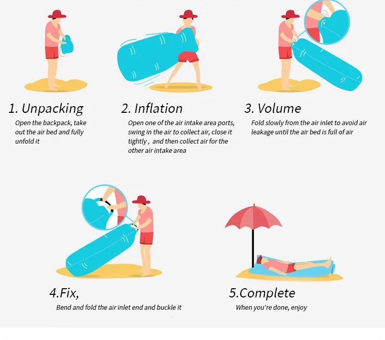 - Il suffit de le remplir d'air en le mettant face au vent et hop, vous voilà prêt pour profiter confortablement de votre moment de détente !